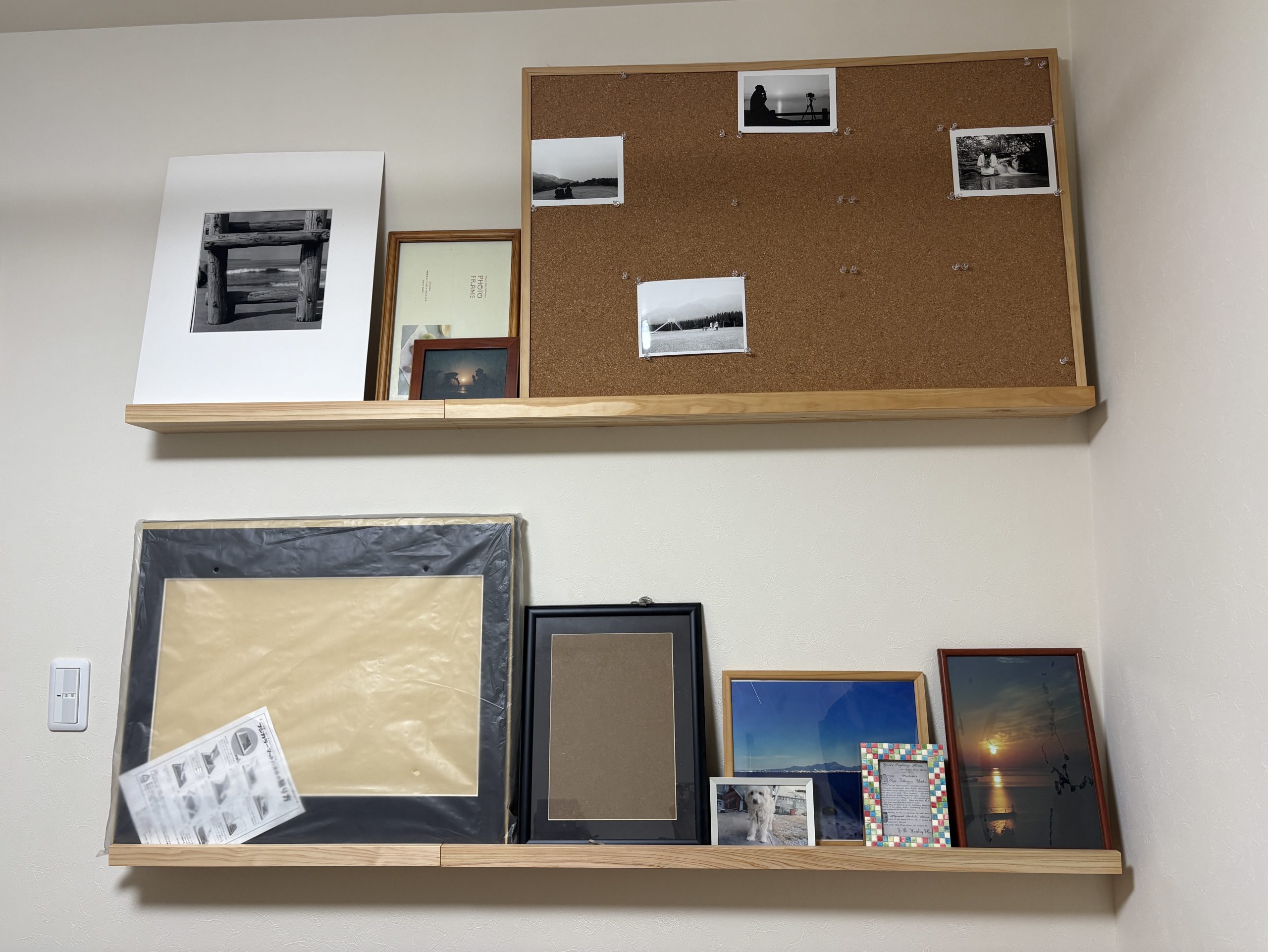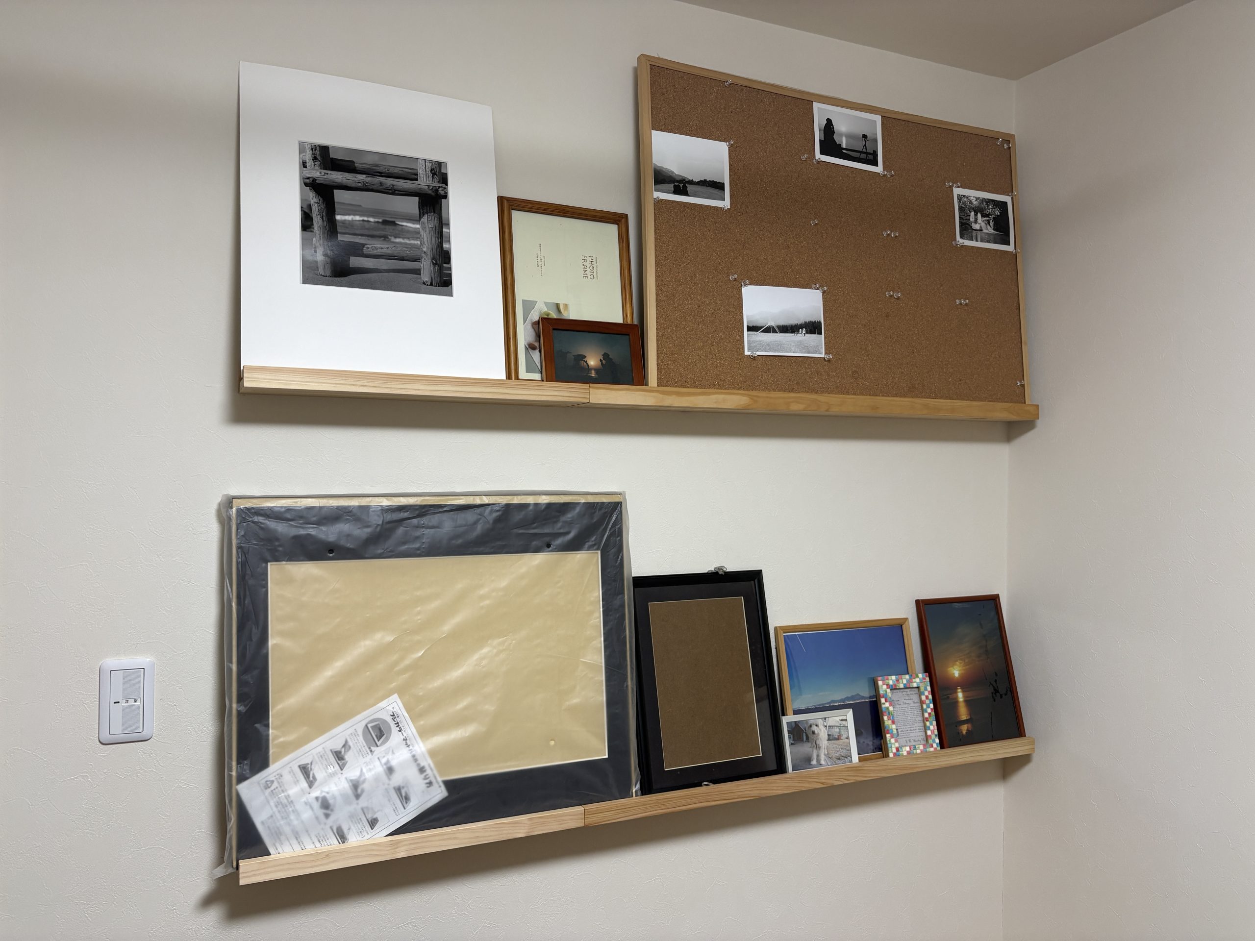 【自宅に写真を飾ろう】自宅ギャラリー化計画 写真・雑貨を飾る棚を製作しようと板を探していたら壁板を入手してしまった結果