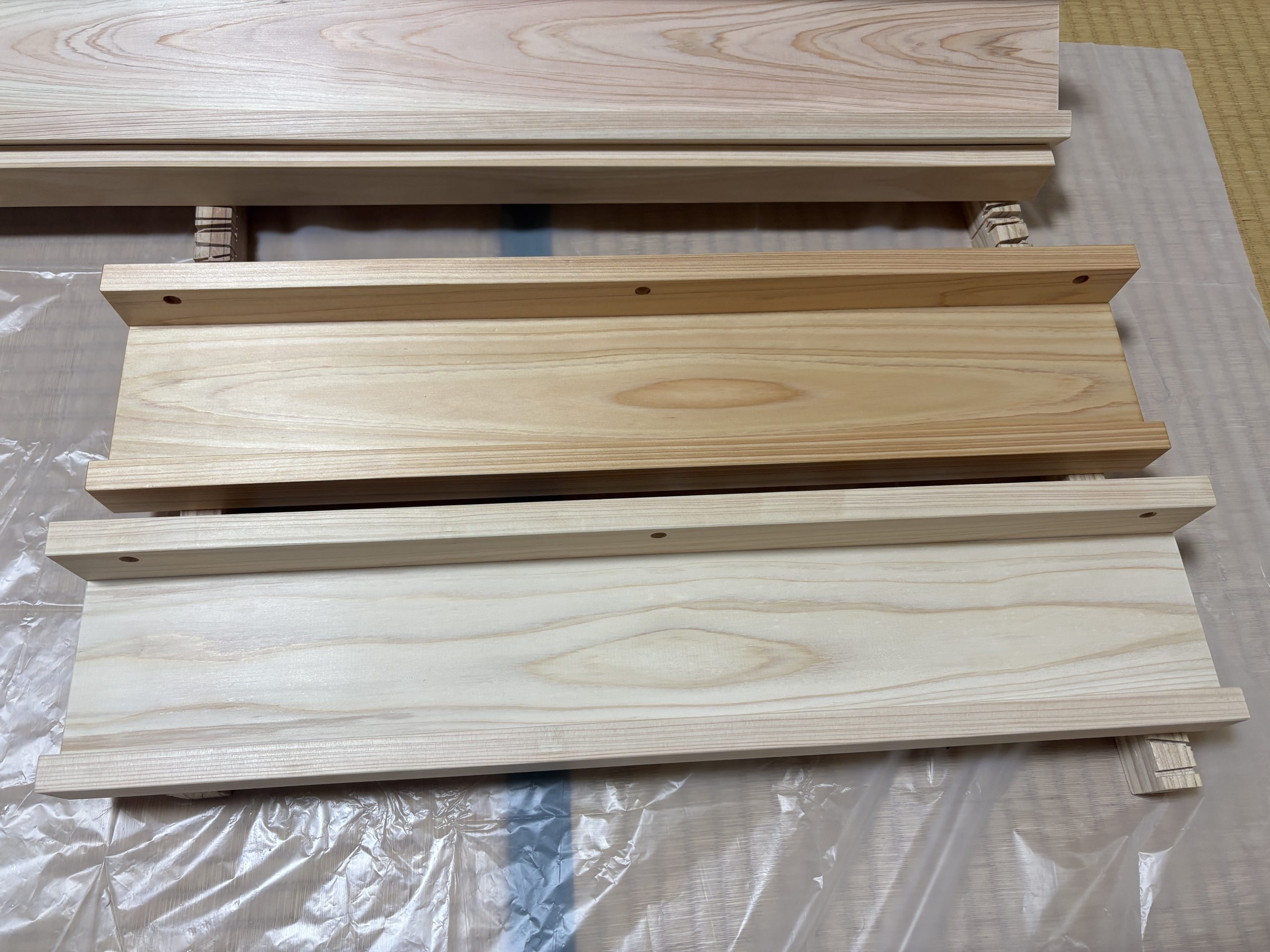 取付予定の部屋の壁を計測し、だいたい1000mmと500mmに分けて製作しました。