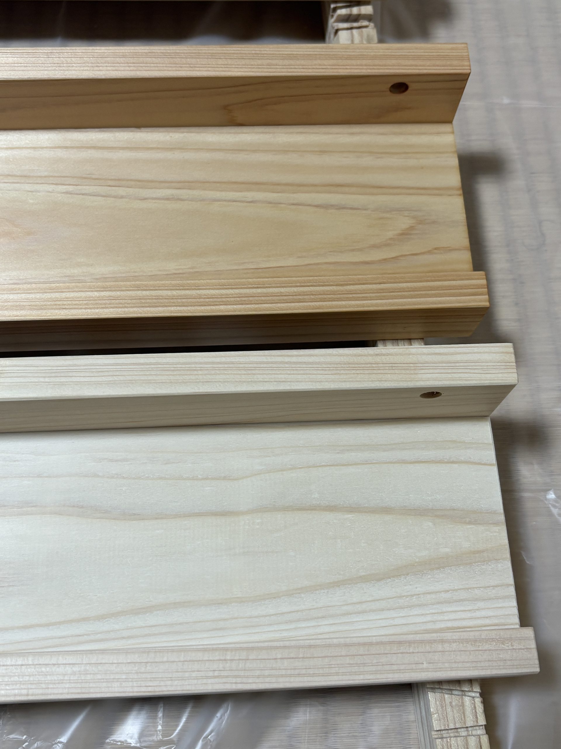 電動丸ノコでカットした面は、ノコの刃の跡がついていて、サンドペーパーでとるのに結構手間がかかりました。